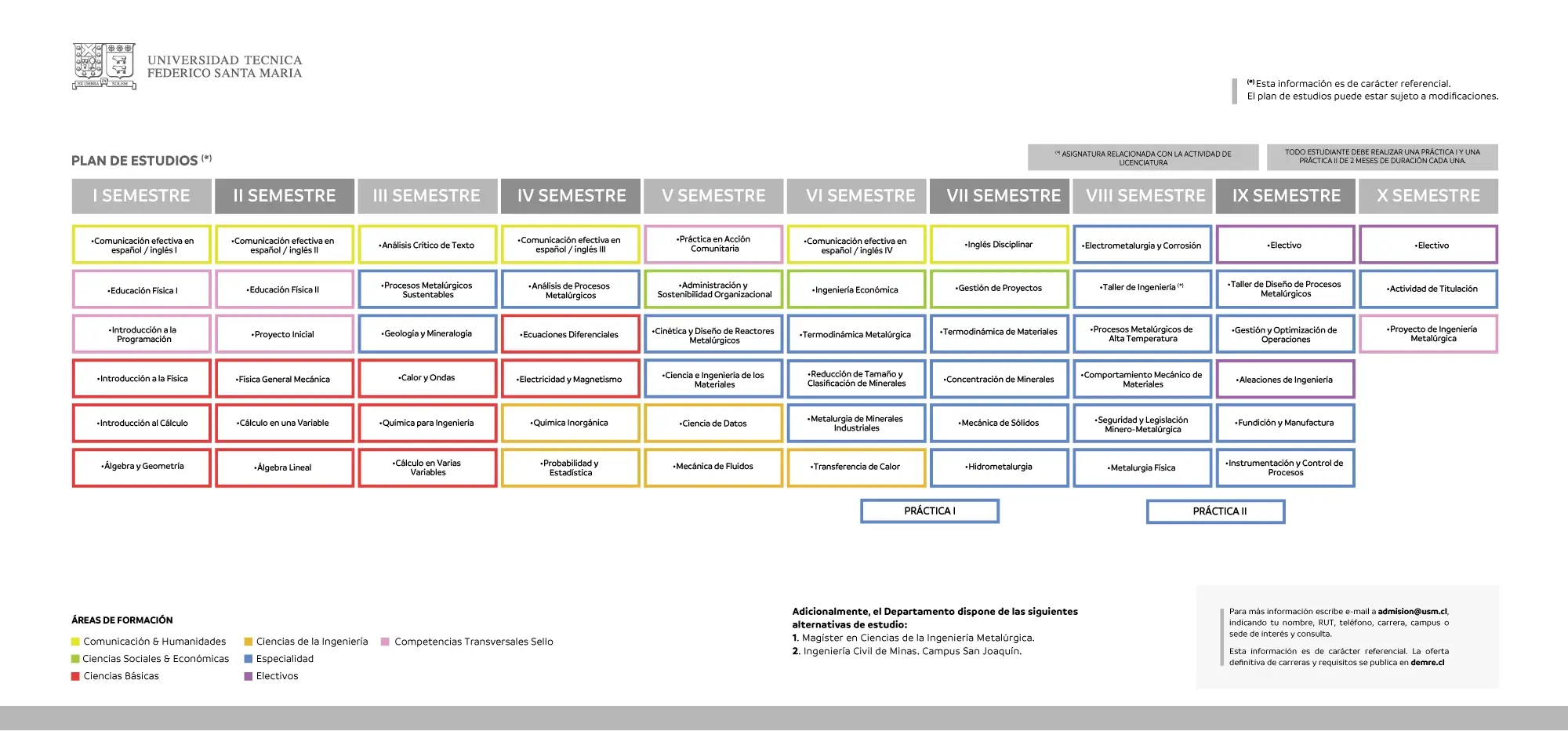Además, evaluará la información técnica y económica relacionada con procesos metalúrgicos, utilizando criterios de evaluación de proyectos que facilitaran una toma de decisiones fundamentada y estratégica. El egresado también estará capacitado para formular y desarrollar proyectos de ingeniería, abordando los aspectos técnicos y económicos de los procesos metalúrgicos para cumplir con los objetivos establecidos. Su formación en innovación y emprendimiento le permitirá identificar y aprovechar oportunidades para introducir avances tecnológicos y promover mejoras continuas en la industria minero-metalúrgica. El/La Ingeniero/a Civil Metalúrgico/a destaca por su compromiso transversal con la calidad, lo cual le permite desenvolverse con excelencia en el campo laboral, comunicándose de manera efectiva tanto en español como en inglés. Por otra parte, promueve el autocuidado, el autodesarrollo y la autogestión a través de un estilo de vida saludable, actuando siempre con una responsabilidad social y ética acorde a los principios inherentes a su profesión y en coherencia con el legado testamentario de Don Federico Santa María.
