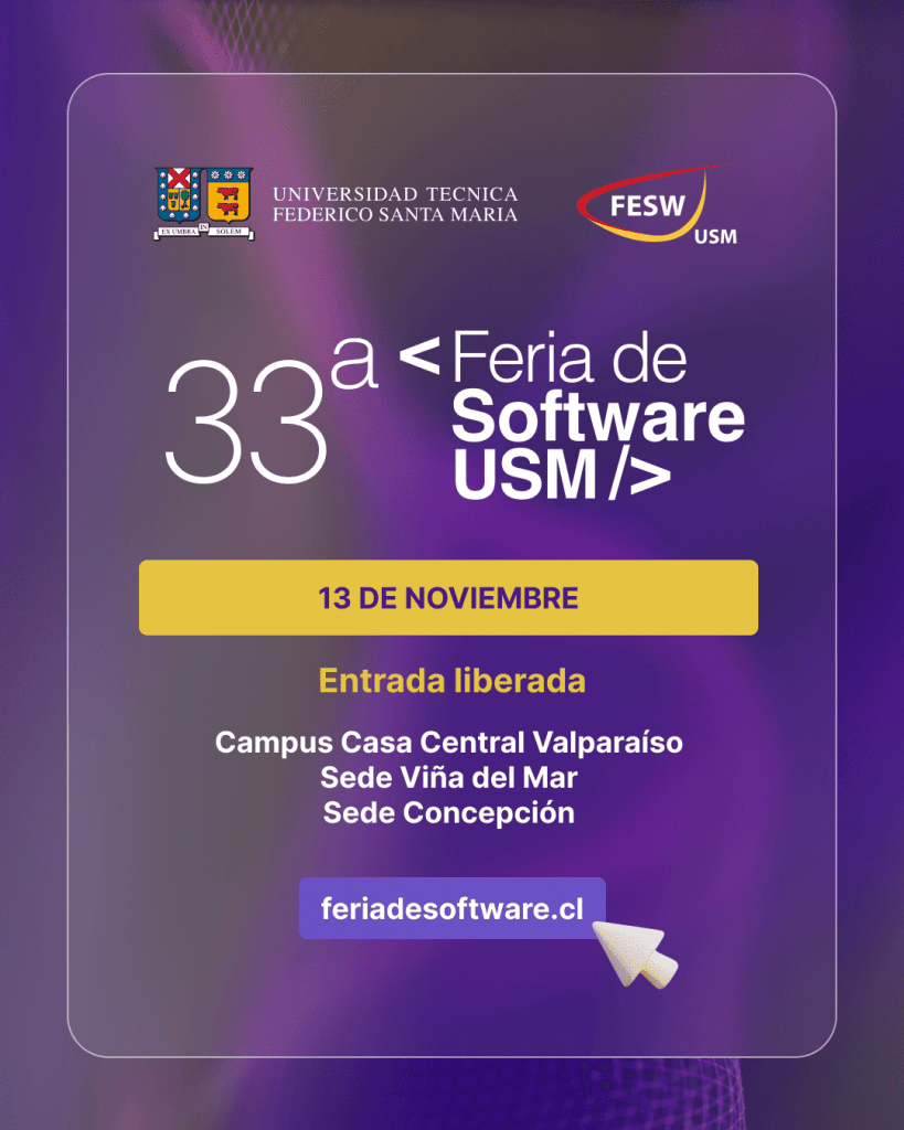 La Universidad Técnica Federico Santa María, a través de su Departamento de Informática, les invita cordialmente a participar de la 33° Feria de Software.