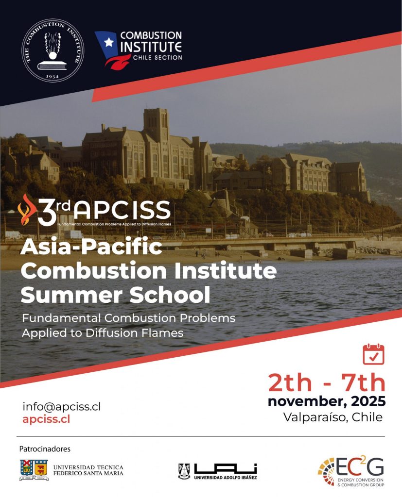 La Universidad Técnica Federico Santa María, a través de su Departamento de Industrias, en colaboración con la Universidad Adolfo Ibáñez, les invitan cordialmente a participar de la tercera edición del Asia-Pacific Combustion Institute Summer School (APCISS3) "Fundamental Combustion Problems Applied to Diffusion Flame".