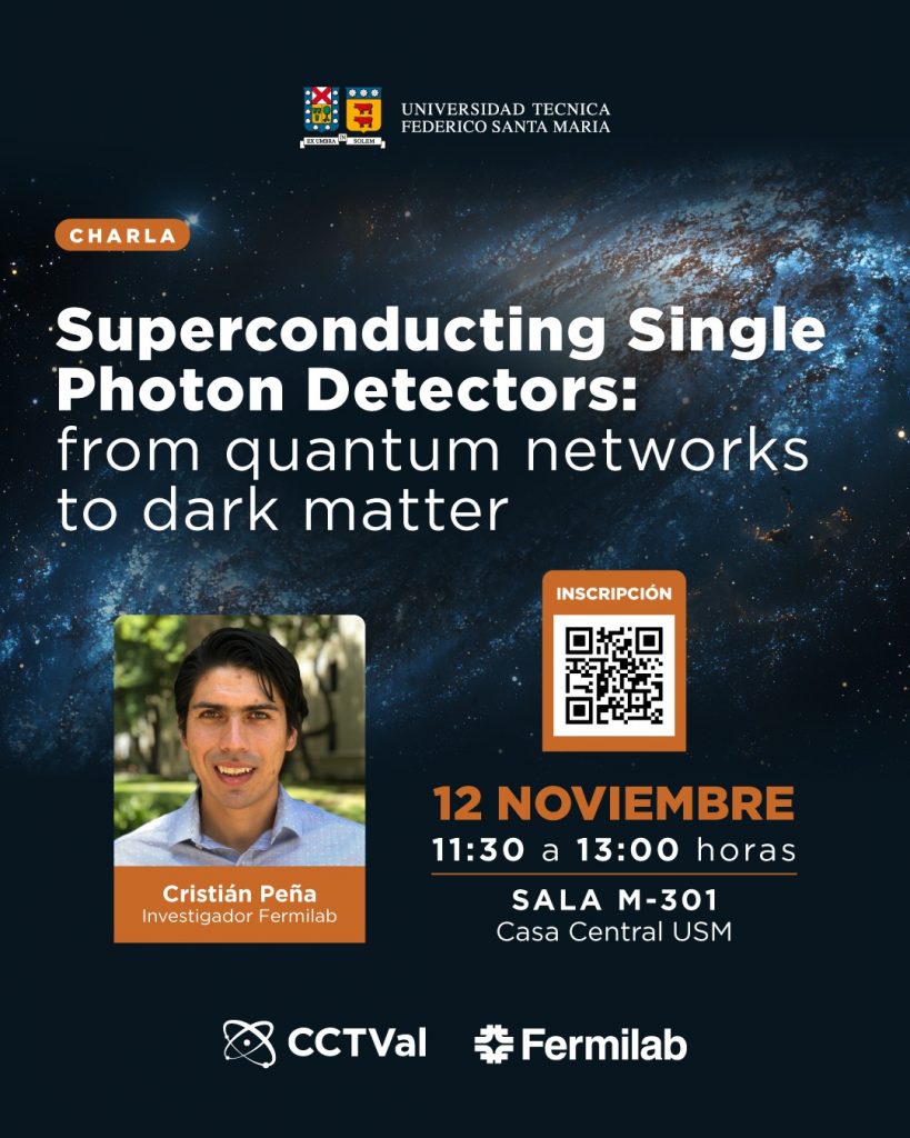La Universidad Técnica Federico Santa María, a través del Centro Científico Tecnológico de Valparaíso (CCTVal), les invita cordialmente a participar de la charla “Superconducting Single Photon Detectors: from quantum networks to dark matter”.