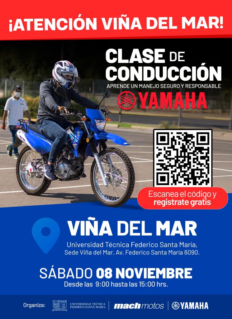 El Departamento de Mecánica y la Carrera de Mecánica Automotriz de la Universidad Técnica Federico Santa María, en conjunto con Yamaha, tienen el agrado de invitarles a participar en la Clase de Conducción Segura y Responsable, una instancia gratuita orientada a promover el manejo consciente y la seguridad vial sobre motocicletas.