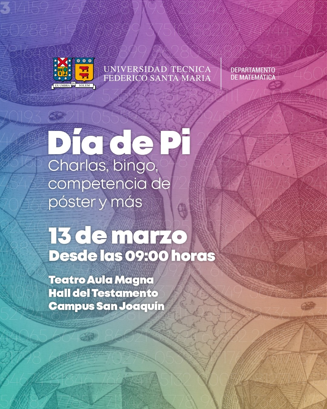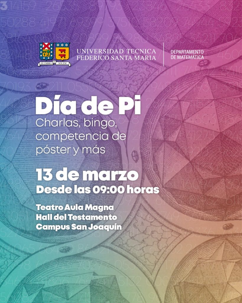 La Universidad Técnica Federico Santa María, a través de su Departamento de Matemática, invita a la comunidad a participar de la jornada de conmemoración "Día de Pi".