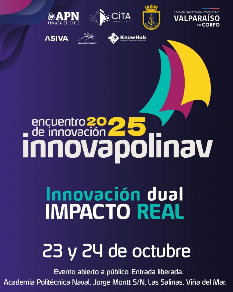 La Universidad Técnica Federico Santa María invita cordialmente a participar en el Encuentro de Innovación “Innovapolinav 2025”, evento organizado por la Armada de Chile y que reúne al ecosistema de ciencia, tecnología, conocimiento e innovación (CTCI) regional y nacional.