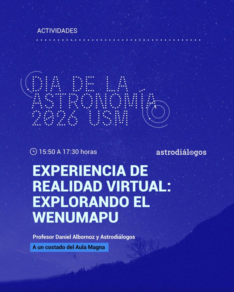 La Universidad Técnica Federico Santa María invita cordialmente a participar en la Experiencia de Realidad Virtual: Explorando el Wenumapu, actividad que forma parte del Día de la Astronomía 2026 USM.