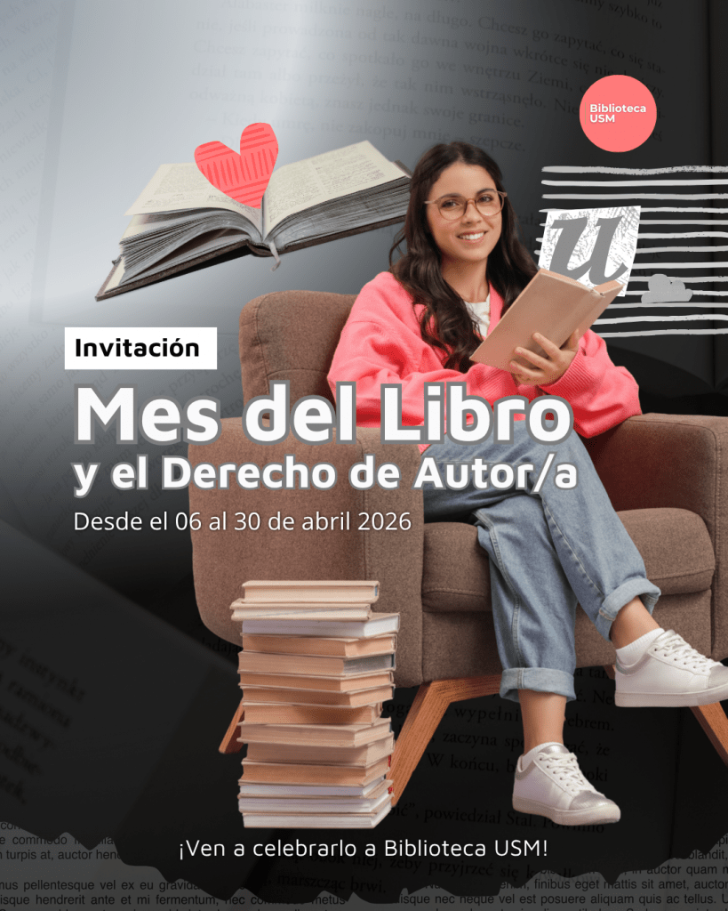 La Universidad Técnica Federico Santa María, a través de su Subdirección de Información y Documentación Bibliográfica (Biblioteca USM), les invita cordialmente a participar de las actividades conmemorativas del Mes del Libro y el Derecho de Autor/a.