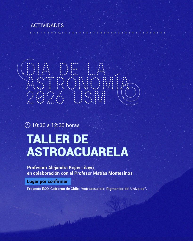 En el marco del Día de la Astronomía 2026 USM, la Universidad Técnica Federico Santa María invita a participar en el Taller de Astroacuarela, una actividad que une ciencia y arte para explorar el universo a través de la pintura.