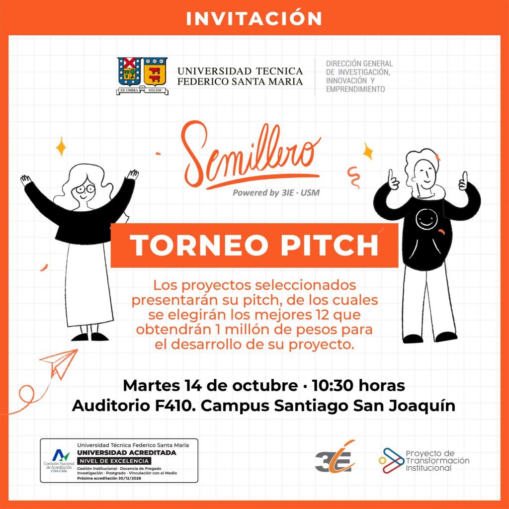 La Universidad Técnica Federico Santa María, a través de su Instituto Internacional para la Innovación Empresarial (3IE), les invita cordialmente a participar del Torneo Pitch Semillero 3IE-USM, actividad que forma parte del programa impulsado en el marco del Proyecto de Transformación Institucional USM, y que busca potenciar ideas de estudiantes y transformarlas en proyectos con impacto real.