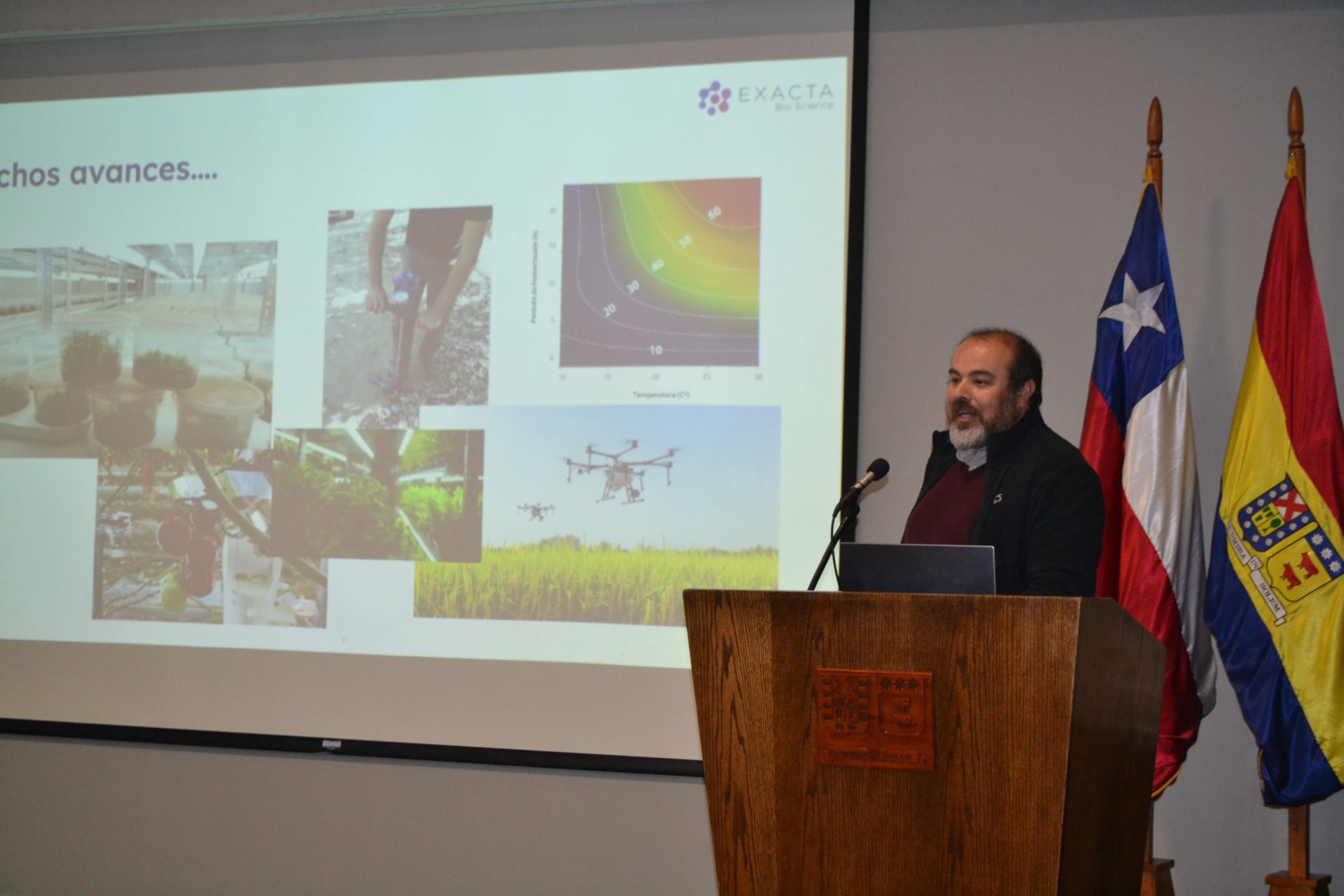 Entre los expositores participaron Caroline León, Ingeniera Civil Bioquímica de la PUCV y jefa del área de gestión de proyectos del Centro Regional de Estudio en Alimentos Saludables (CREAS), quien presentó la ponencia “Innovación alimentaria y sustentabilidad: una oportunidad para el desarrollo profesional”; y el Dr. Julio Retamales, cofundador y Director Científico de Exacta Bioscience SpA, quien expuso sobre “Biotecnología agrícola: ciencia e innovación para el control de enfermedades en el campo”.