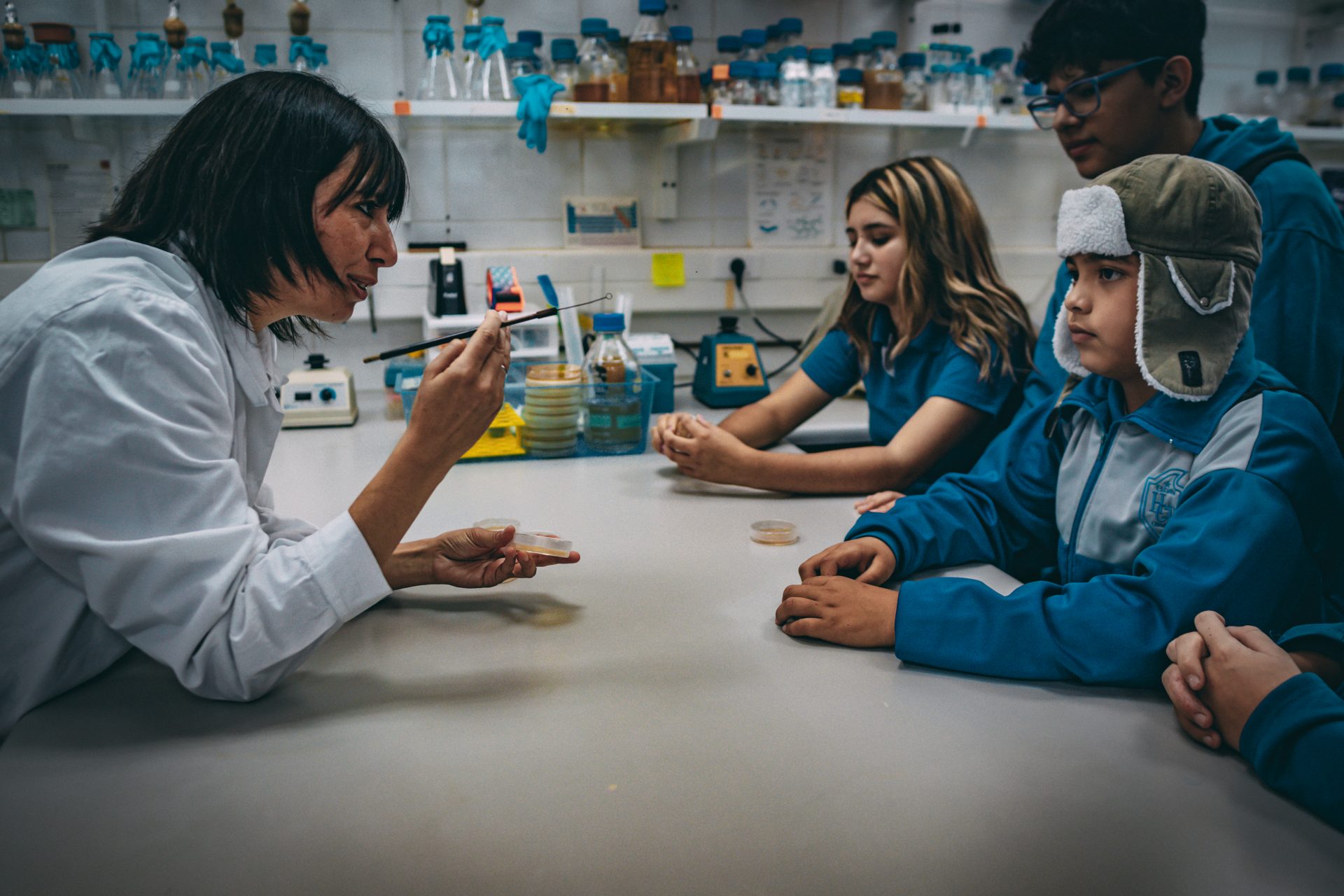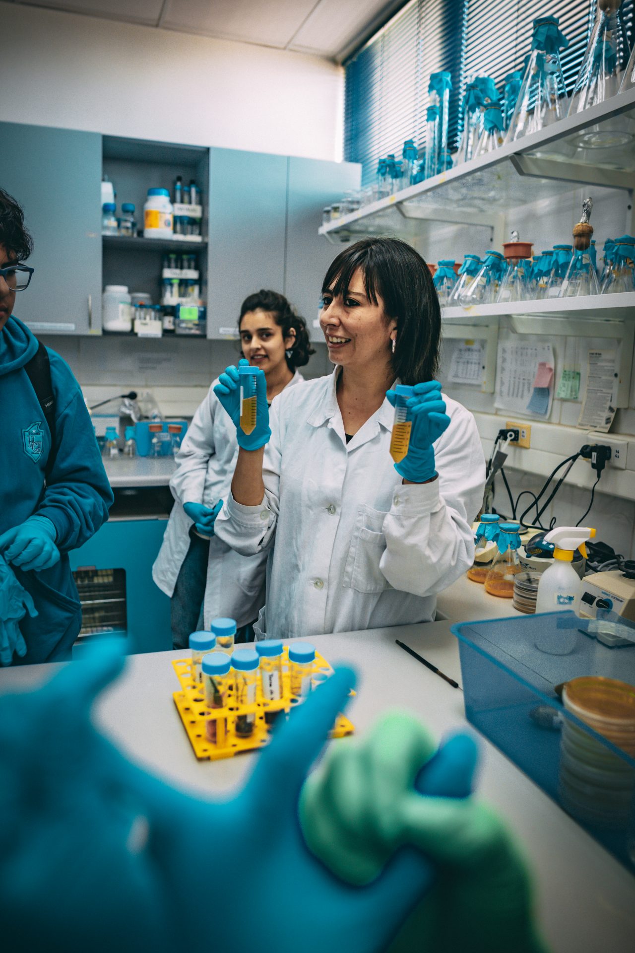 Durante la jornada, los estudiantes realizaron un recorrido por los laboratorios del CBDAL, específicamente a los de Biotecnología marina, a cargo de la Dra. Beatriz Cámara; Biotecnología agrícola, a cargo de la Dra. Marcela Carvajal; y de Biotecnología apícola, a cargo de la Dra. Karen Yáñez. Sumado a lo anterior, también visitaron los laboratorios de robótica del Centro Avanzado de Ingeniería Eléctrica y Electrónica, AC3E, y exploraron los laboratorios de Productos naturales, Fotoquímica y Química general, del Departamento de Química de la universidad.