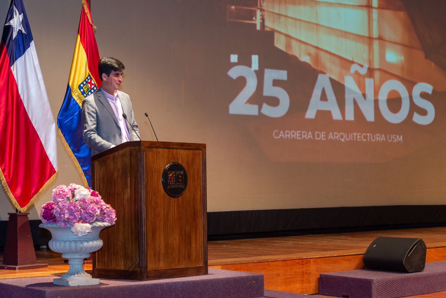 En este encuentro, realizado en el Teatro Aula Magna, el Rector Juan Yuz agradeció la labor que tras 25 años ya es reconocida a nivel local, nacional e internacional. “Nos sentimos orgullosos de nuestro Departamento de Arquitectura, al cual hemos visto crecer y desarrollarse. Valoramos enormemente la mirada enriquecedora que han aportado a la Universidad gracias al trabajo interdisciplinario y a la vinculación con la sociedad”, expresó.