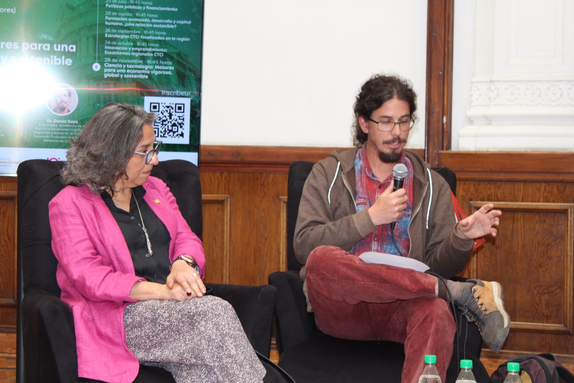 El conversatorio, denominado “Ciencia y tecnología: motores para una economía vigorosa, global y sostenible”, contó con la participación del ex ministro de CTCI, Andrés Couve, quien es biólogo y académico de la Universidad de Chile; el economista y también académico de la U de Chile, Jorge Katz y la directora de Enami, socia consejera de Innova Chile y socia fundadora de Women BoardUp, Nancy Pérez, quienes fueron moderados por Daniel Goya, economista y académico de la Pontificia Universidad Católica de Valparaíso.
