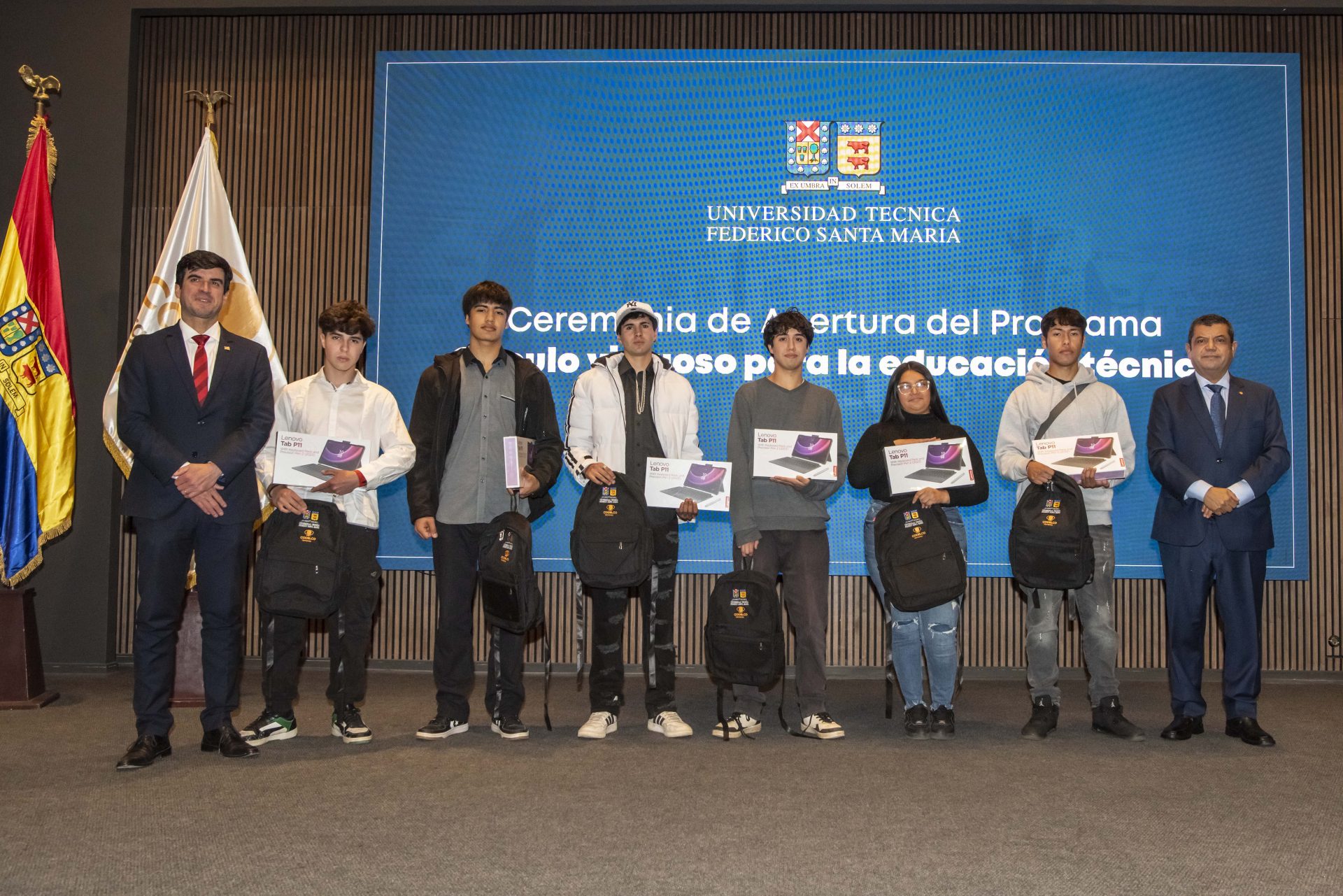 “Desde sus inicios, nuestra universidad, fiel al legado testamentario de nuestro fundador, don Federico Santa María, se ha preocupado por brindar oportunidades. Esta iniciativa nos permite poner en valor el conocimiento, sin embargo, si este no se traduce en beneficios para las personas, pierde su verdadero significado. Por ello, quisiera felicitar a las y los alumnos que han sido parte de este programa, tanto a quienes ya se han titulado en nuestras carreas técnicas, como a quienes han dado lo mejor de sí en sus estudios actuales”, señaló el rector de la USM, el Dr. Juan Yuz, quien, durante la ceremonia, entregó unas palabras de aliento a los nuevos sansanos.