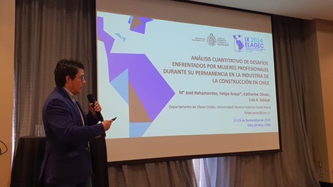 En el caso de los académicos, Felipe Araya actuó como uno de los track chairs del evento y presentó el trabajo titulado “Análisis cuantitativo de desafíos enfrentados por mujeres profesionales durante su permanencia en la industria de la construcción en Chile”. En el caso de Luis Salazar, participó en el comité científico como editor del congreso, además de cumplir el rol de moderador de sesiones plenarias y ser el encargado de brindar las palabras de cierre del evento.