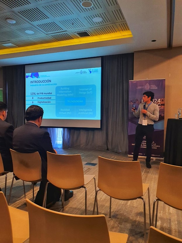 En el detalle, Diego Peralta presentó su trabajo titulado “Estudio exploratorio sobre el impacto de la gestión del talento en la rotación laboral en proyectos de construcción en Chile”, mientras que Daniel Canque expuso su investigación denominada “Chat GPT como herramienta de planificación de proyectos en estudiantes de construcción civil”