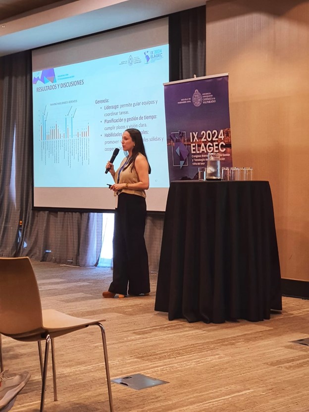 En tanto, Valeria Olivari expuso los trabajos titulados “Estudio de un proceso de licitación de subcontratos en proyectos mineros utilizando un análisis cualitativo de contenido”. Finalmente, Carlos Mura presentó sobre “Una revisión de alcance para Scrum en la industria de la construcción: aplicaciones, beneficios, y retos”