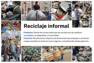 Durante la actividad, las y los jóvenes, organizados en grupos de cinco integrantes, compuestos por estudiantes de las tres universidades, trabajaron un proyecto que diera solución a una de las tres problemáticas presentadas en el workshop: Trabajo informal, Reciclaje informal y Calidad de vida.