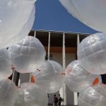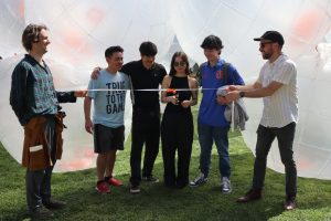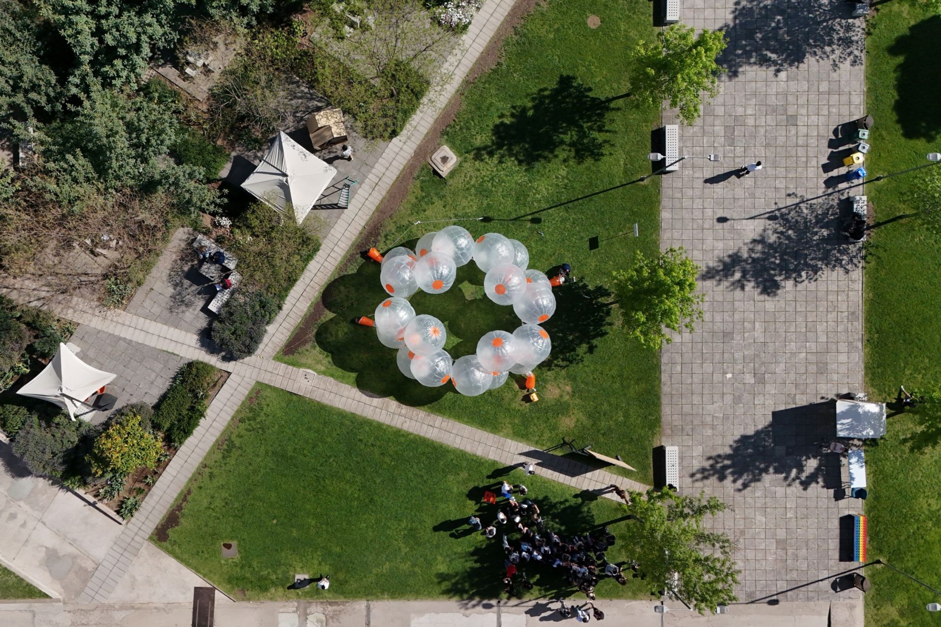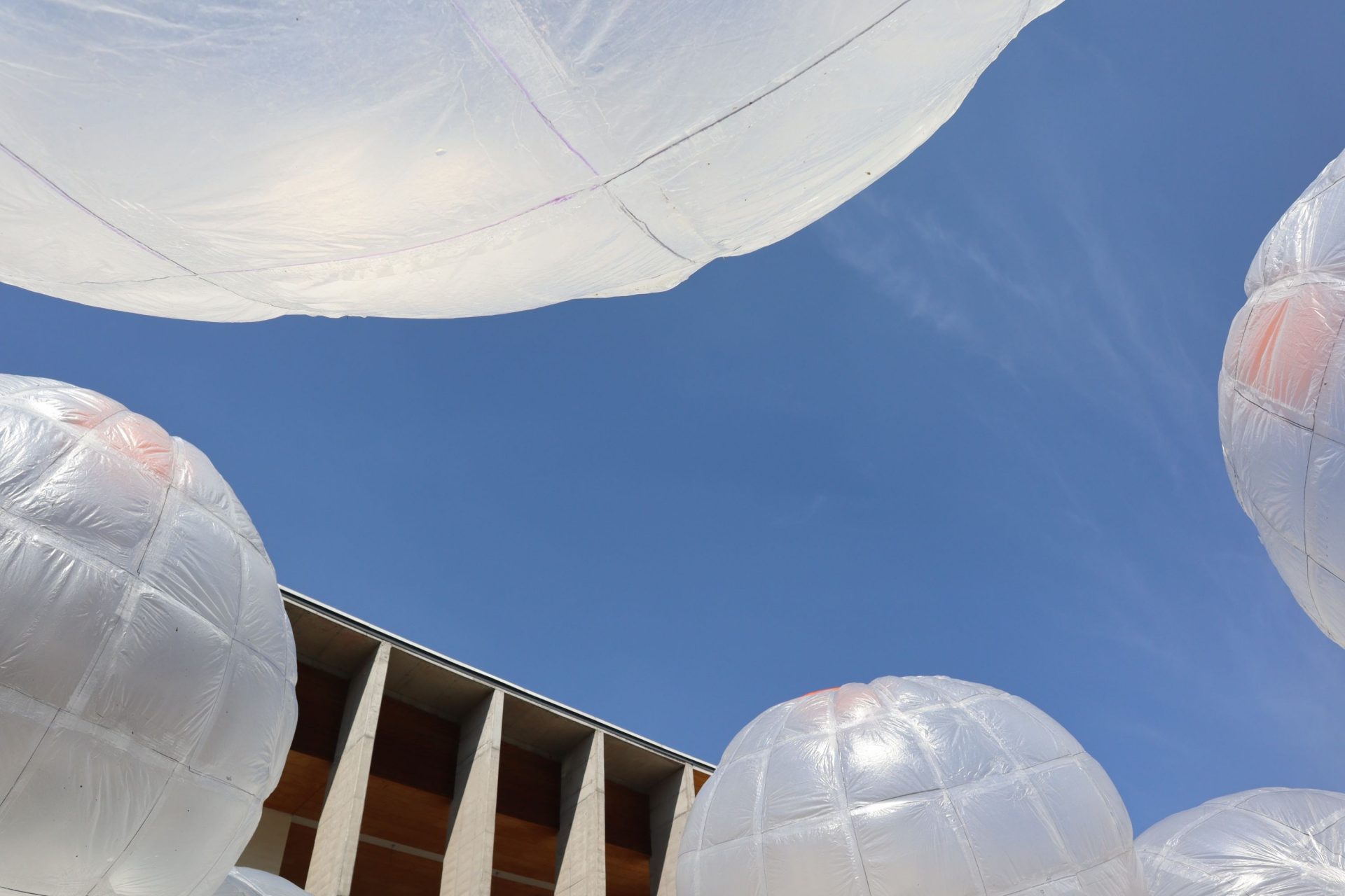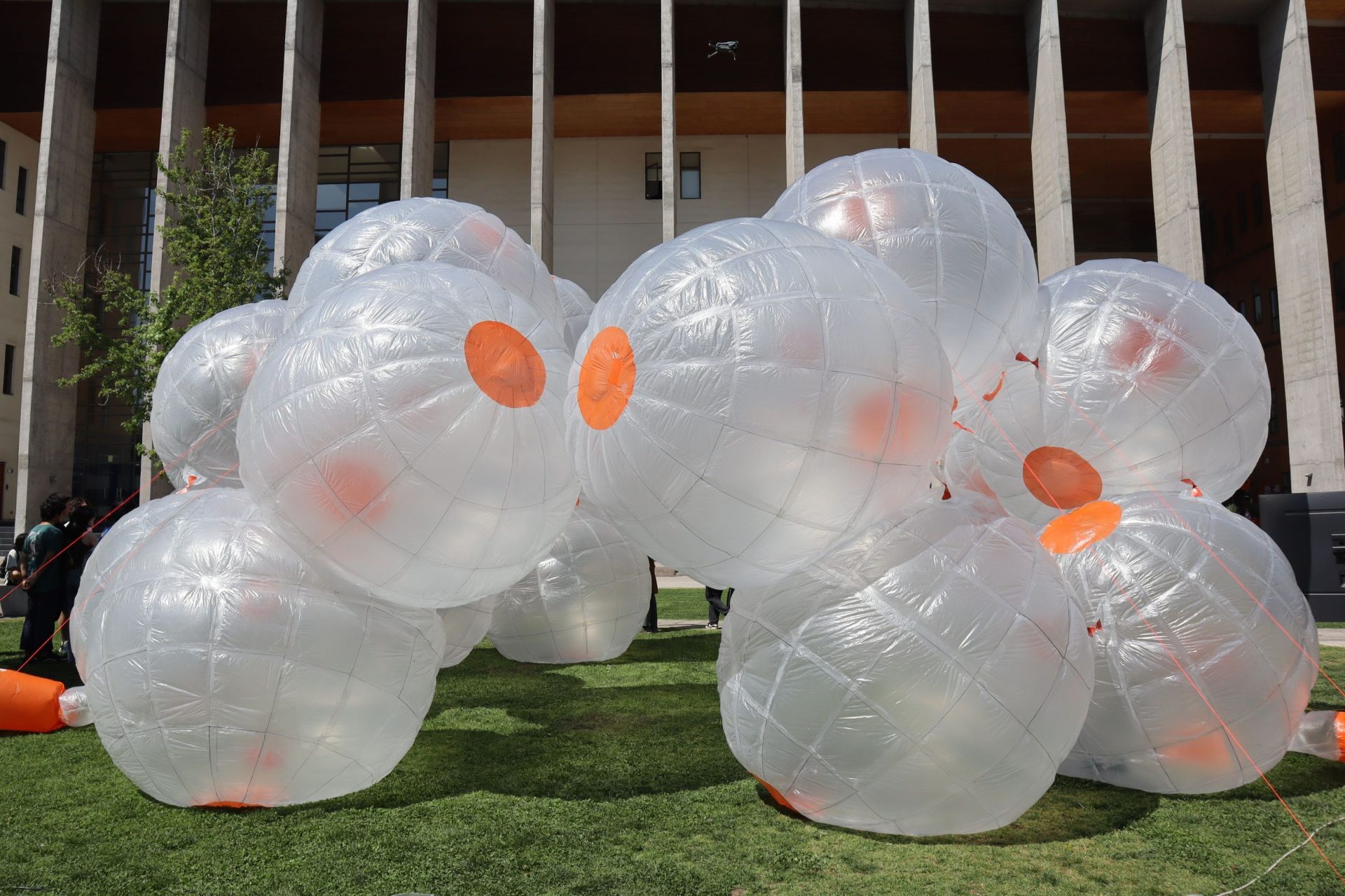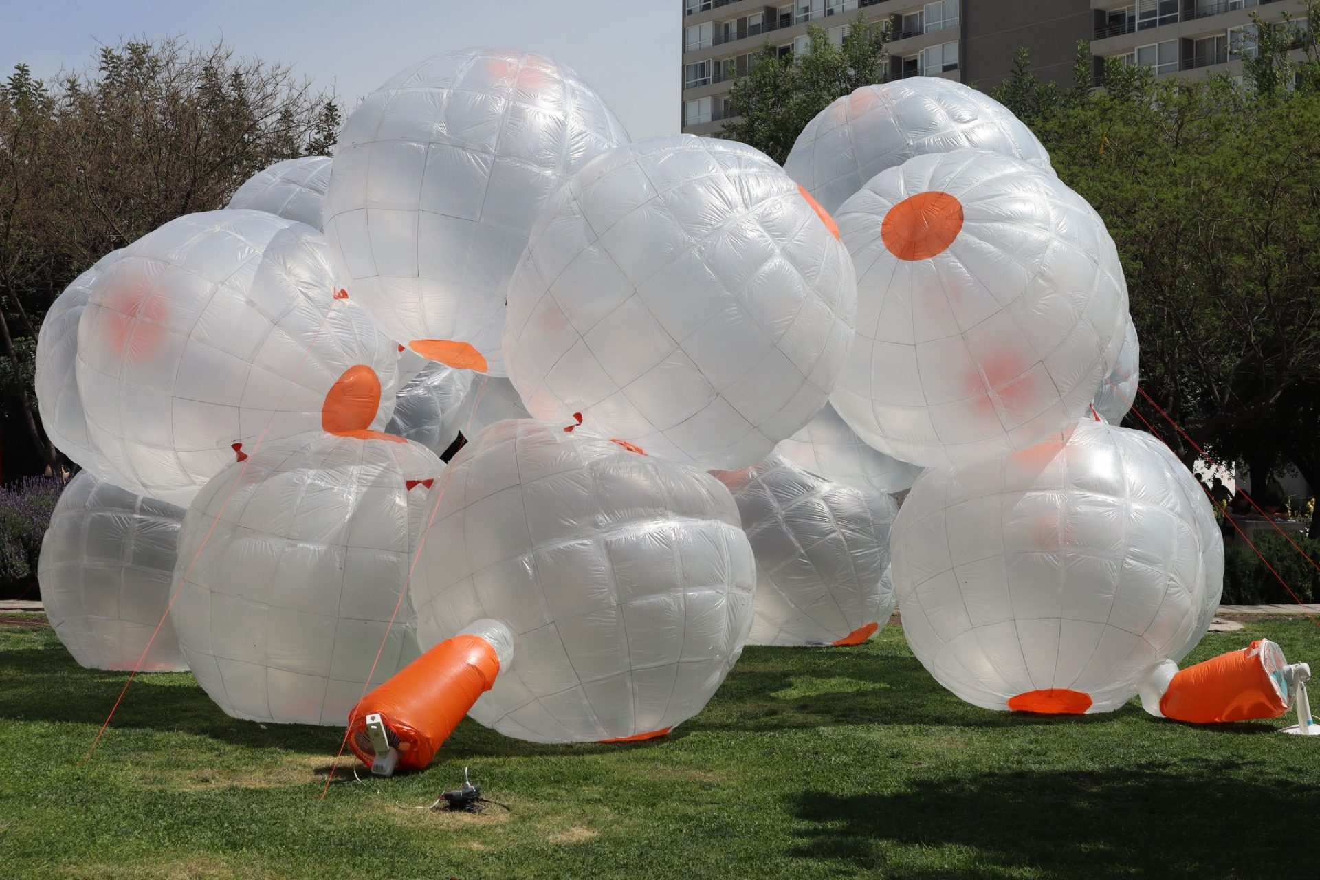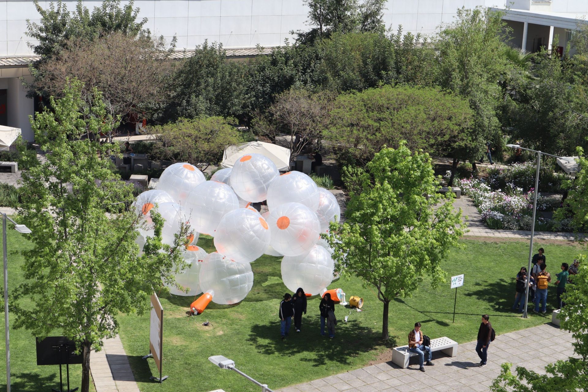 Tras un mes de arduo trabajo, 75 estudiantes de primer año de Arquitectura de la Universidad Técnica Federico Santa María presentaron a la comunidad universitaria de Campus San Joaquín el pabellón NUBE, estructura modular e inflable construida por las y los estudiantes a escala real.