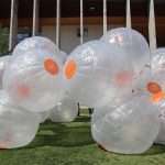 Este espacio semi cubierto está compuesto por un conjunto de 20 esferas idénticas unidas entre sí, cada una de dos metros de diámetro, abarcando una superficie total de aproximadamente 140 metros cuadrados.