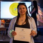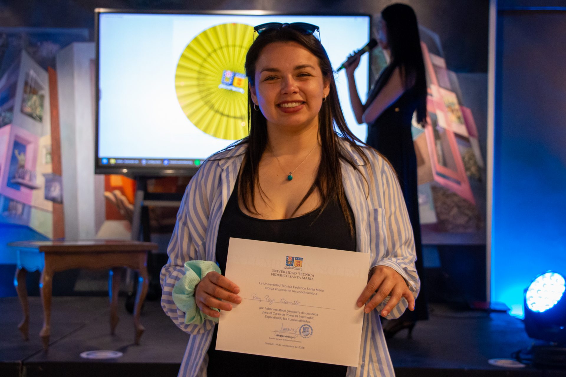 Paz Pezo, titulada de Ingeniería en Construcción en 2022, fue una de las afortunadas ganadoras de una beca sorteada por la Dirección de Educación Continua entre quienes asistieron al encuentro. “El networking fue un espacio cómodo y agradable. Conversé con profesionales mayores y me reencontré con compañeros. Lo repetiría sin duda. Me voy feliz. Hoy es difícil retomar estudios y acceder a becas, así que ganar este premio es sensacional. Lo voy a aprovechar al máximo”.