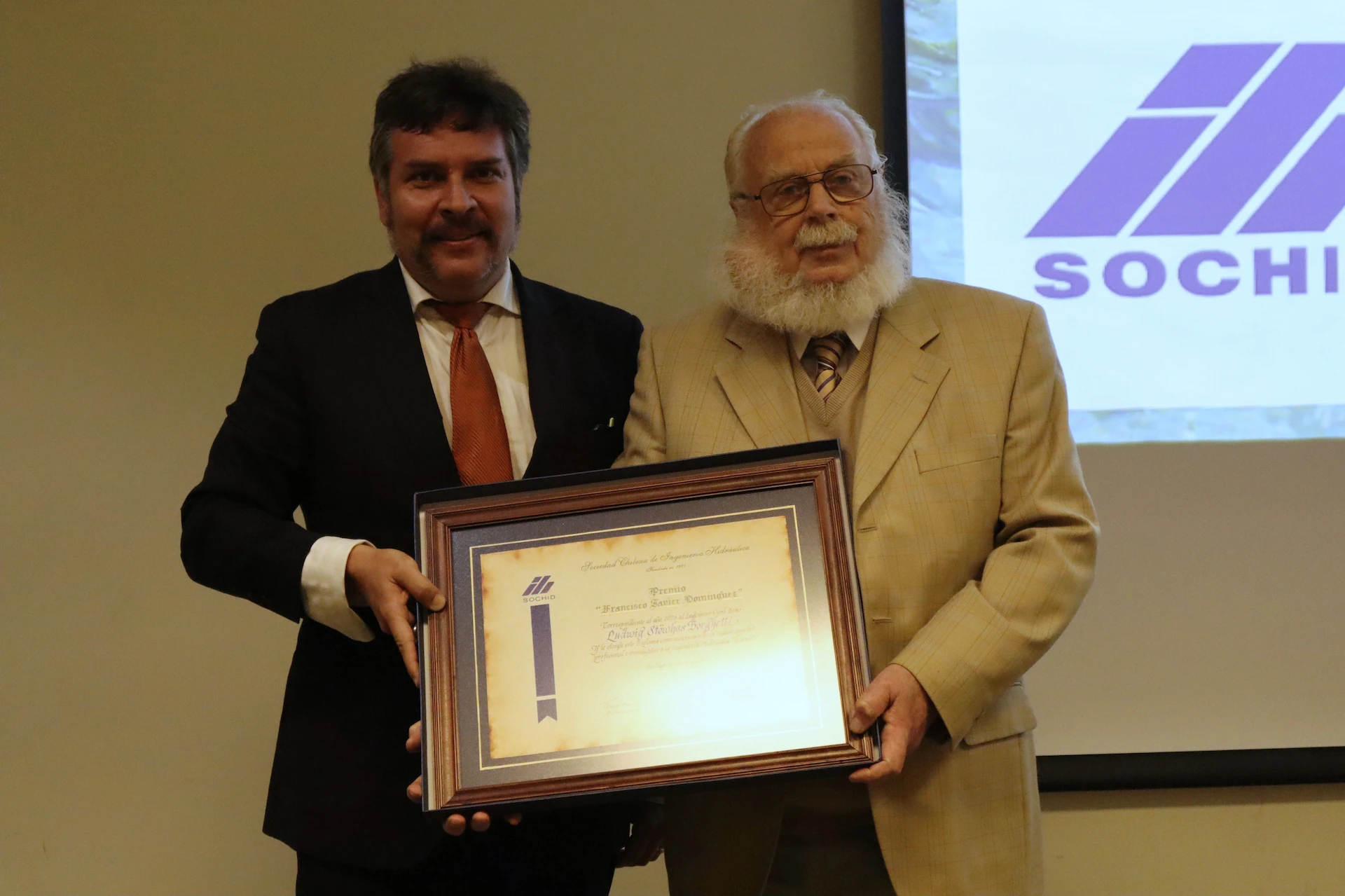 Ludwig Stöwhas, exprofesor del Departamento de Obras Civiles de la Universidad Técnica Federico Santa María fue galardonado con el Premio “Francisco Javier Domínguez” otorgado por la Sociedad Chilena de Hidráulica (SOCHID), distinción que reconoce sus seis décadas dedicadas a la ingeniería y a la formación de profesionales que hoy lideran el ámbito hidráulico en Chile.