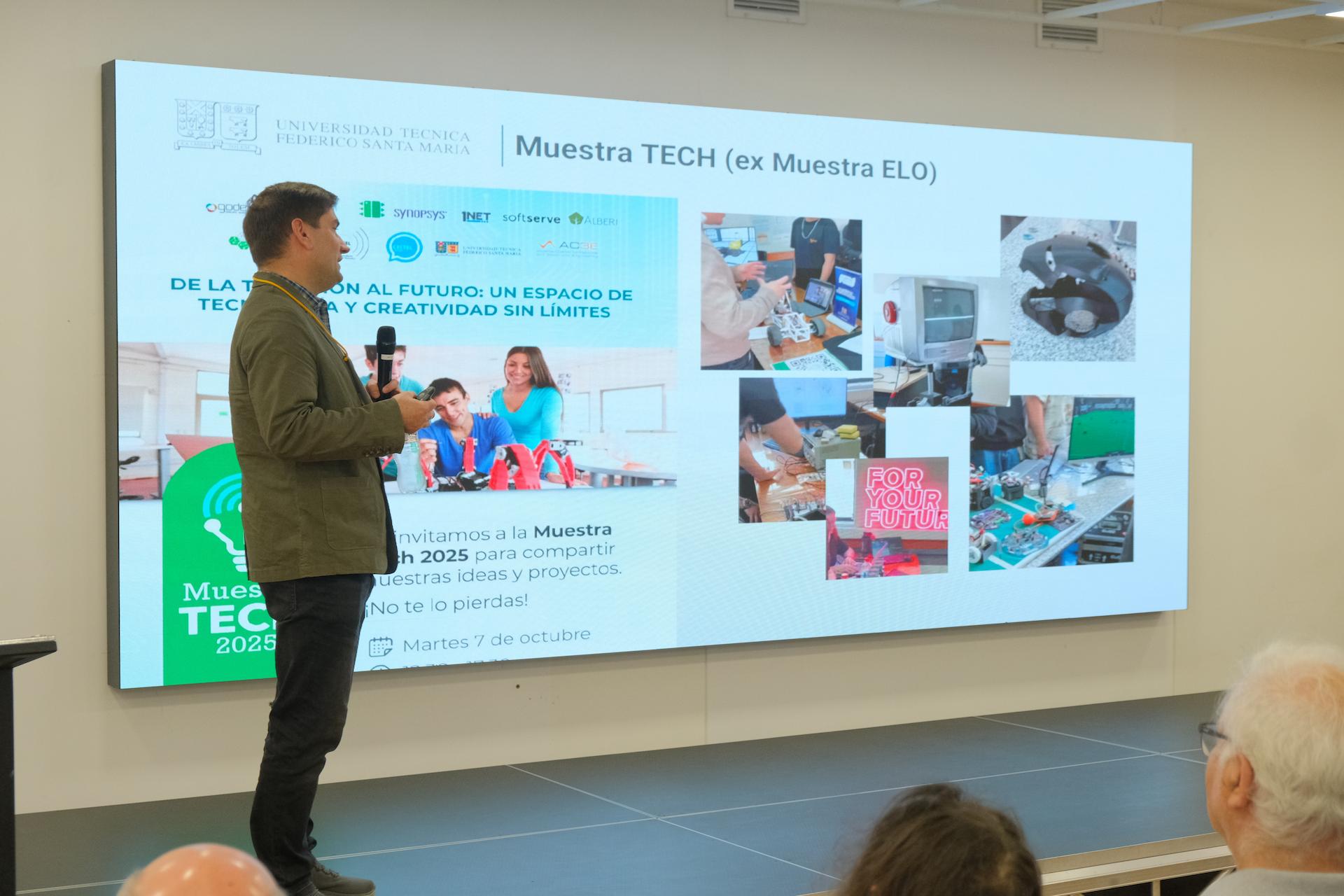Juan Yuz, rector de la USM, destacó la relevancia de esta instancia al señalar que “encuentros como el ELO Day reflejan lo mejor de nuestra comunidad sansana: talento, colaboración y un compromiso permanente con nuestra institución. Es especialmente significativo reencontrarnos con nuestras generaciones de Electrónica y Telemática, una comunidad cuya trayectoria evidencia cómo el mérito y la excelencia se reflejan en cada ámbito donde nuestros exalumnos desarrollan su vocación”.