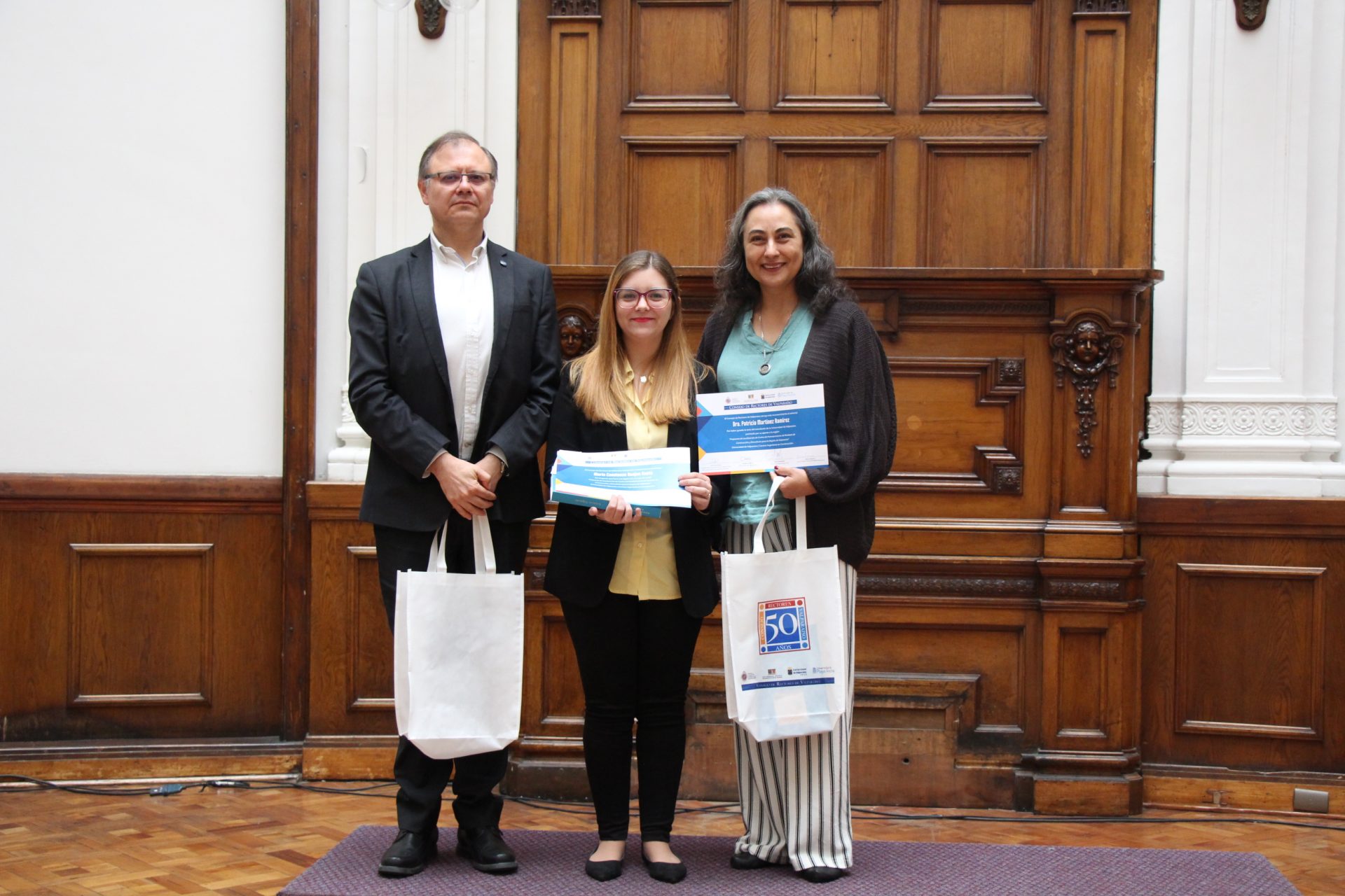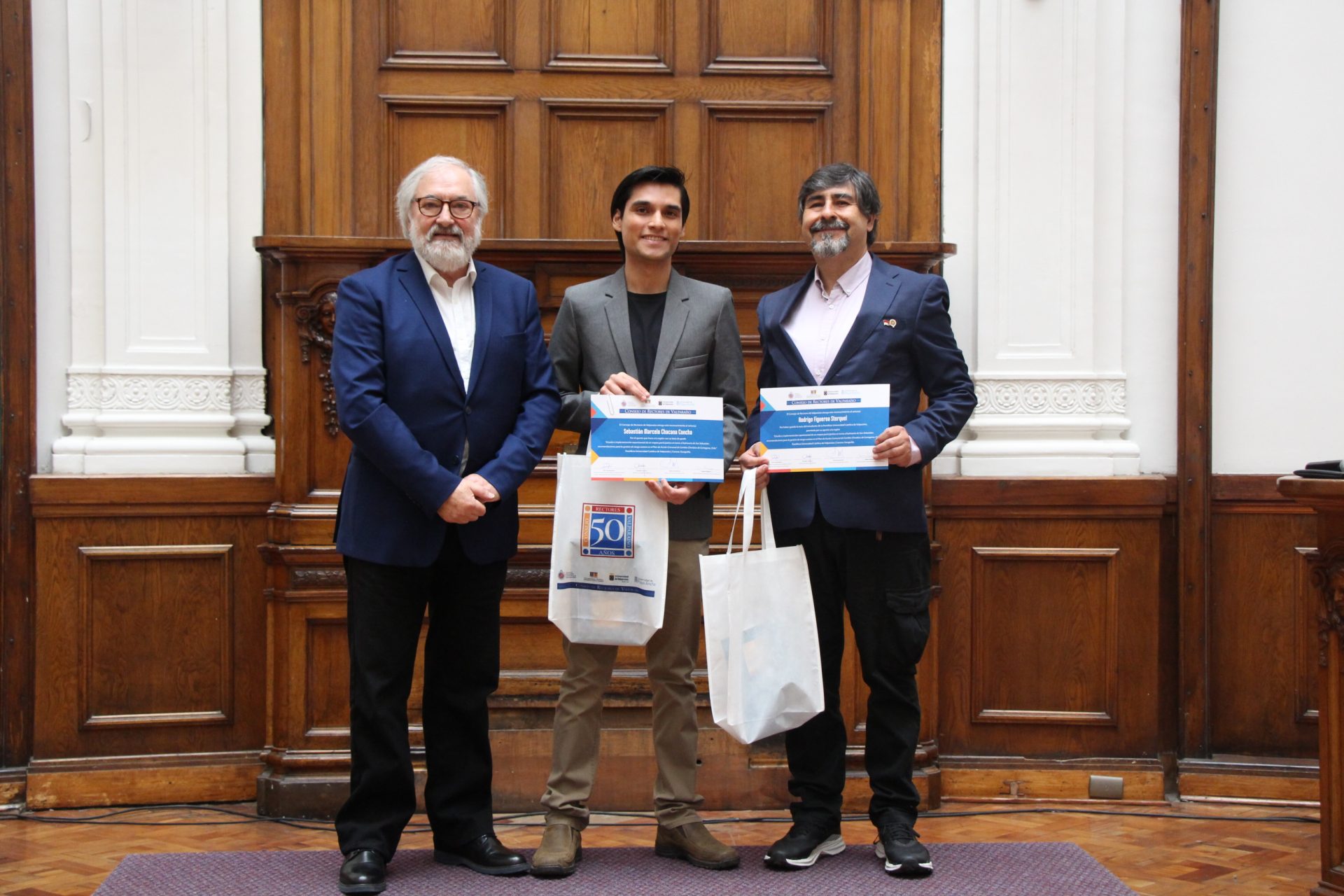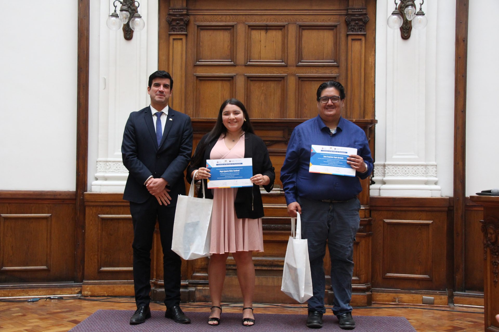 La ceremonia también rindió homenaje a otros estudiantes de las casas de estudio de la región cuyas tesis abordaron desafíos diversos, desde la gestión de residuos de construcción hasta el cambio climático y la habitabilidad. Todos ellos fueron reconocidos junto a sus profesores guías, destacando la importancia del trabajo colaborativo en la generación de conocimiento con impacto social.