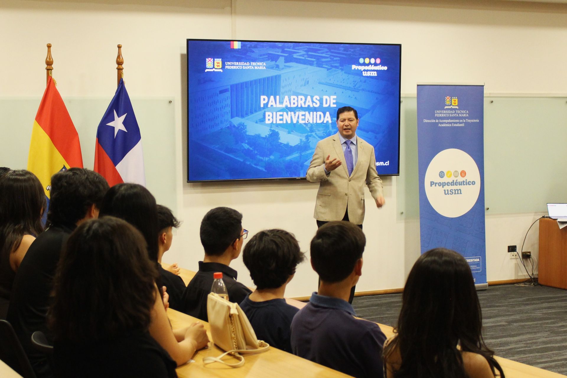 Durante la actividad en Campus San Joaquín, el director académico, Claudio Tapia, felicitó a las y los jóvenes por el compromiso demostrado durante el proceso, señalando que “ya dieron un paso importante, saben el rigor que se debe tener para estudiar en la USM, una de las mejores universidades del país. Ahora serán parte de una élite académica, una marca que los distinguirá cuando trabajen o sigan estudiando”.
