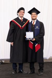En representación de sus respectivas generaciones, los titulados José Pedro Silva, de la carrera de Ingeniería de Ejecución en Control e Instrumentación Industrial, e Iván Aballay, de Técnico Universitario en Mantenimiento Industrial, entregaron emotivos mensajes que reflejaron el camino recorrido durante su paso por la USM.