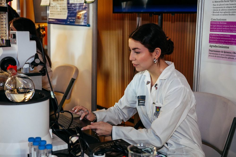 Los proyectos ganadores mostraron la variedad de ideas y enfoques presentes en la ciencia. En la categoría universitaria, Emma Aburto, estudiante de la USM, obtuvo el primer lugar con el proyecto “Higiene Hidrolizada a base de restos de especies marinas”, una propuesta biotecnológica que busca reutilizar los desechos de la industria pesquera para crear productos de higiene sustentables.