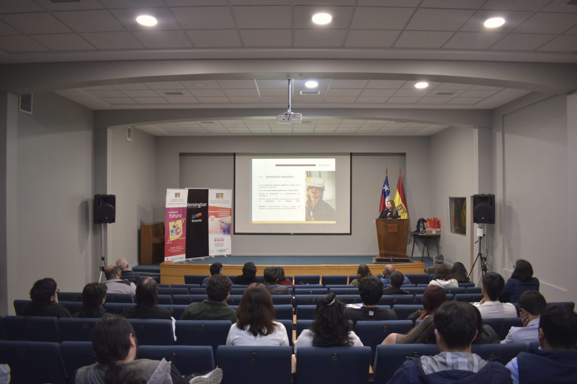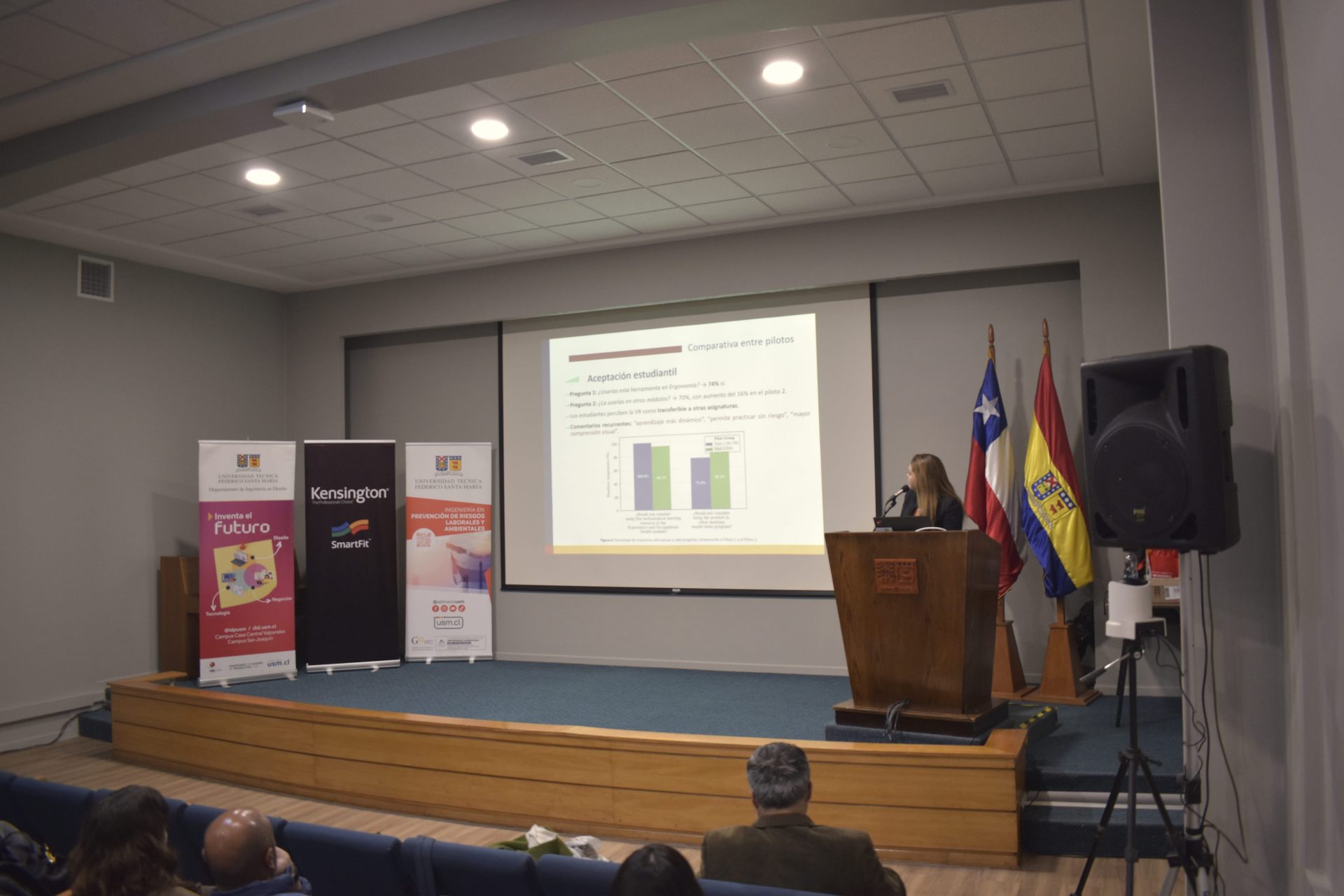 Por su parte, Valeria Bravo Carrasco, académica asistente del Departamento de Ingeniería en Diseño y expositora del tema “Diseño de entorno de aprendizaje en ergonomía por medio de realidad virtual para evaluaciones de puestos de trabajo (EPT)”, explicó que instancias como esta son esenciales para motivar a los estudiantes a involucrarse en investigación y desarrollo, es muy positivo que puedan participar, aprender y generar nuevas conversaciones e iniciativas que aporten a su desarrollo profesional desde áreas tan complementarias como el diseño y la prevención de riesgos”.