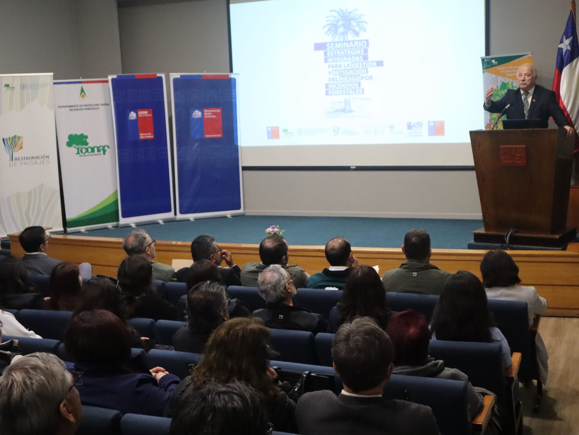 Con gran éxito se realizó en la Universidad Técnica Federico Santa María, Sede Viña del Mar, el seminario “Estrategias integradas para la gestión y mitigación del riesgo por incendios forestales”, instancia organizada por el Ministerio de Medio Ambiente (MMA), con el apoyo de la Corporación Nacional Forestal (CONAF), el Proyecto GEF Restauración de Paisajes y el Proyecto GEF SBAP.