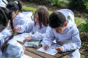 En la visita más reciente, estudiantes de segundo básico del Colegio Compañía de María recorrieron hitos del campus y el apiario, observaron la sala de cosecha y trabajaron con material didáctico alineado al currículo de ciencias, vinculando contenidos sobre hábitat, cadena alimenticia y biodiversidad con su entorno cotidiano.