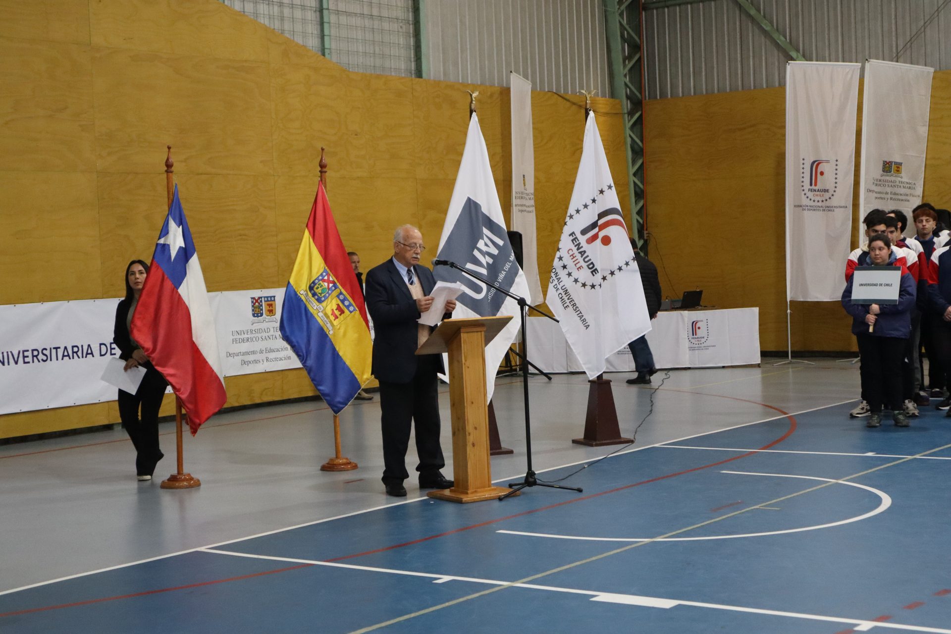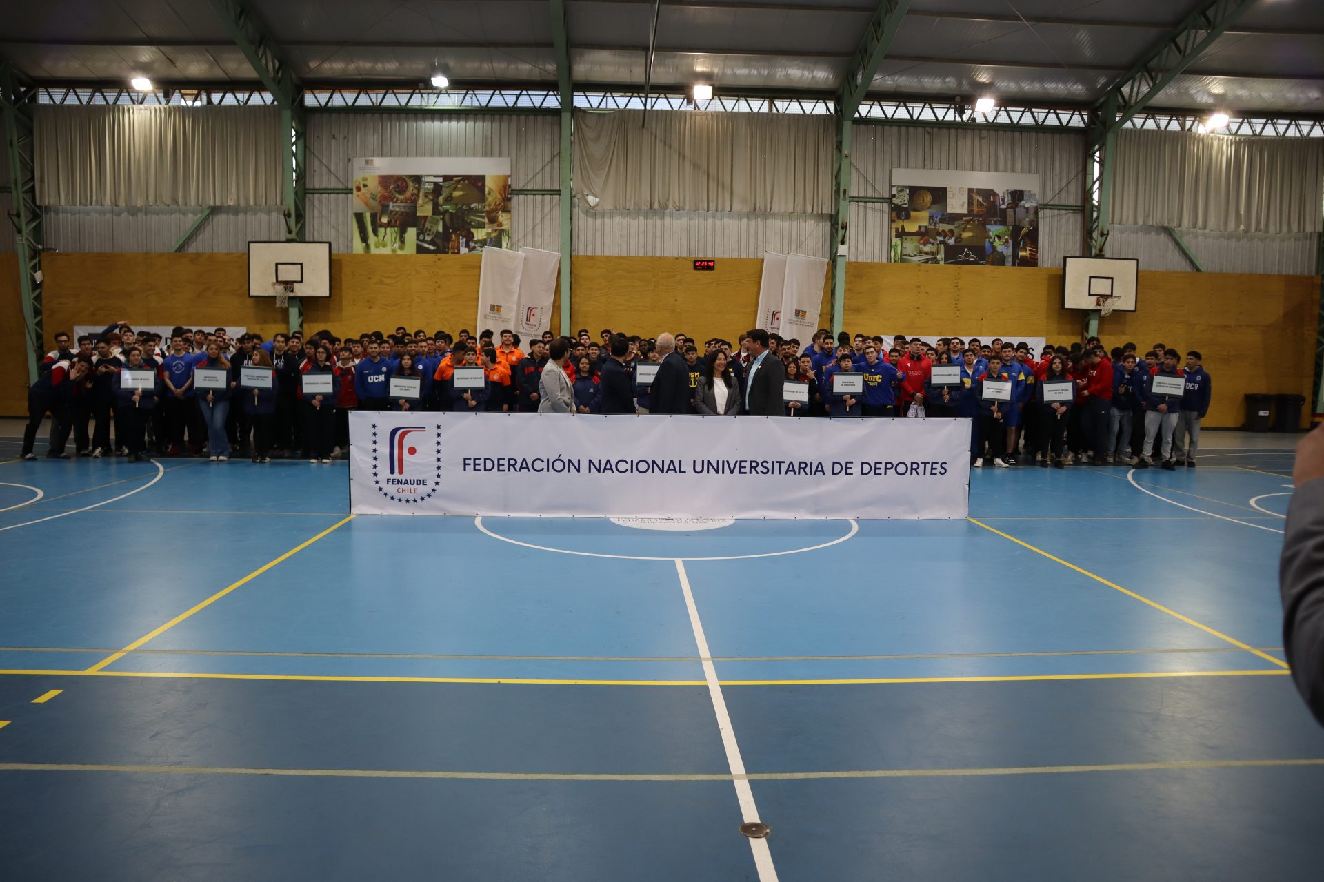 En el gimnasio de la sede Viña del Mar de la Universidad Técnica Federico Santa María, se realizó la ceremonia inaugural del Campeonato Nacional de Básquetbol Masculino FENAUDE 2023, instancia que contó con la presencia de autoridades universitarias y las delegaciones deportivas de universidades de todo Chile.