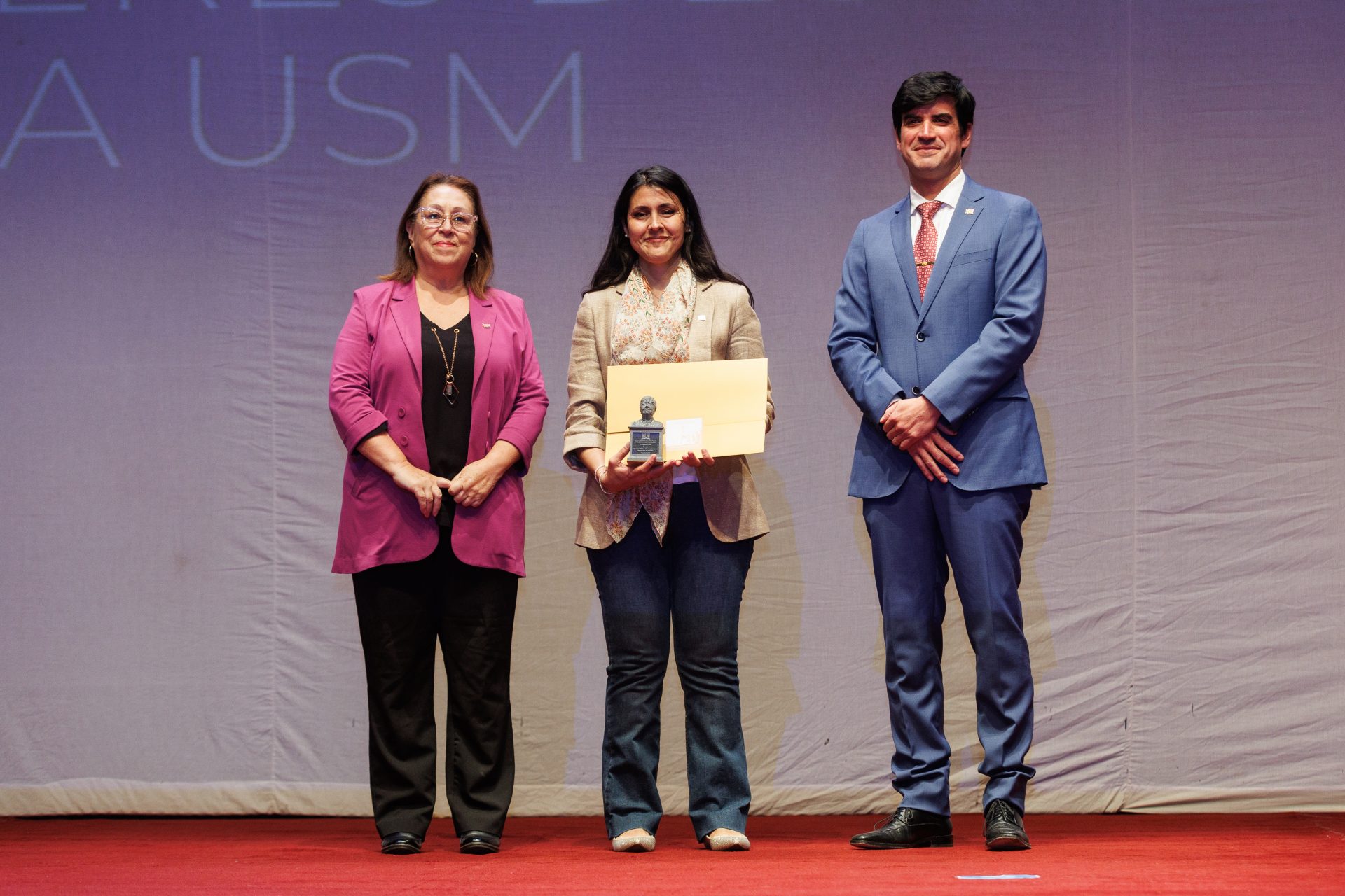 Durante la ceremonia, presidida por el Dr. Juan Yuz Eissmann, rector de la USM, también se entregó por tercer año consecutivo el Premio Graciela Muñoz Marazzi, galardón que reconoce la trayectoria y aportes de mujeres pertenecientes a la comunidad universitaria y que desde distintos roles y espacios han demostrado su compromiso profundo con los principios y valores de la casa de estudios.