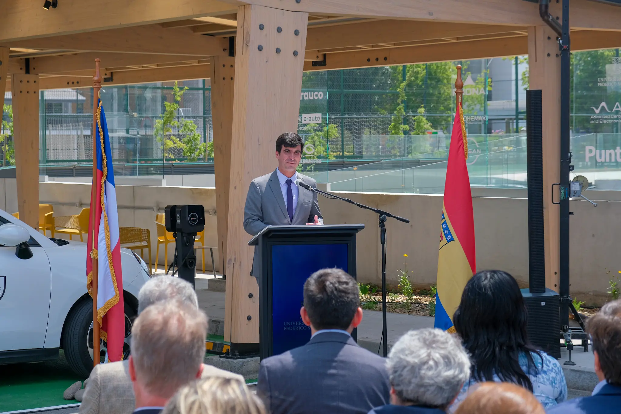 El director de Infraestructura de la USM, Óscar Jalil, destacó que “ante la falta de infraestructura de carga en Chile, abrimos esta tecnología a toda la comunidad universitaria, con un proyecto que está diseñado para nuestra red de campus y sedes, que es escalable y fácilmente replicable a otras instituciones, y que provee de energía 100% solar, con un sistema autosustentable de carga lenta y gratuita para nuestros estudiantes, profesores y funcionarios”.